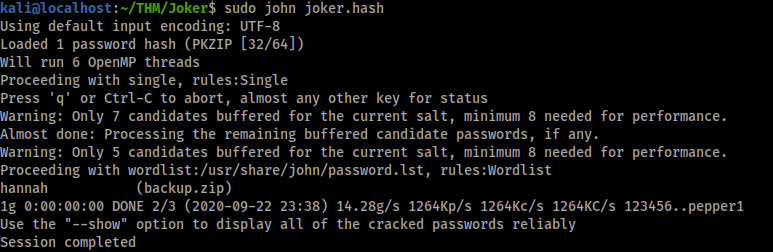 When we visit /backup.zip we can download a zip file but it seems to be password protected, lets crack it!