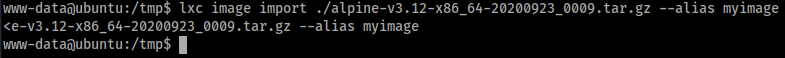 lxc image import ./alpine-v3.12-x86_64-20200923_0009.tar.gz --alias myimage