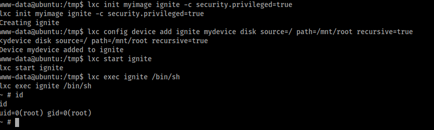 Looks like were being told to abuse the group ‘lxd’ for a possivle privesc, lest research