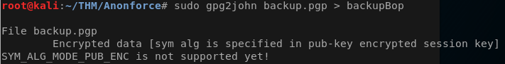 sudo gpg2john backup.pgp > backupBop