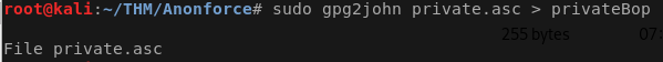 sudo gpg2john private.asc > privateBop