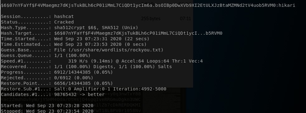 hashcat -m 1800 hash --wordlist /usr/share/wordlists/rockyou.txt --force