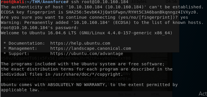 Ok now the root creds lets try logging in with ssh